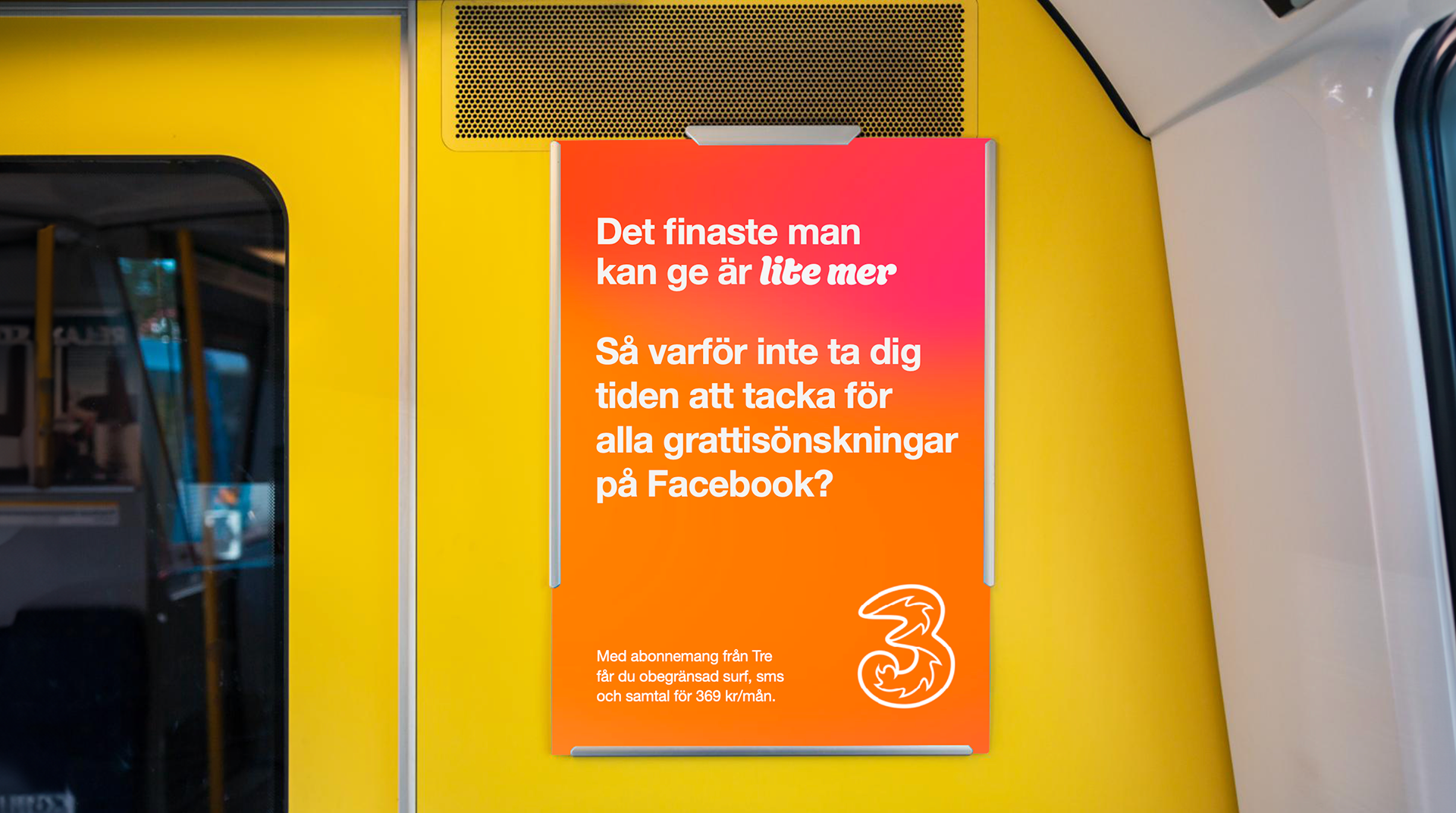 När Tre skulle lansera sitt nya koncept "Det finaste man kan ge är lite mer" fick jag äran att skriva ett gäng rubbar och radios som skulle fånga känslan av att ge lite mer.